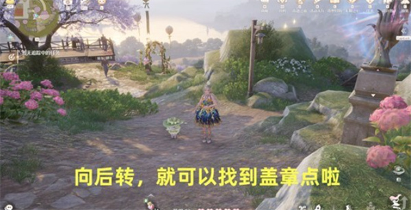 盖章位置:向后转视角,即可看到盖章点