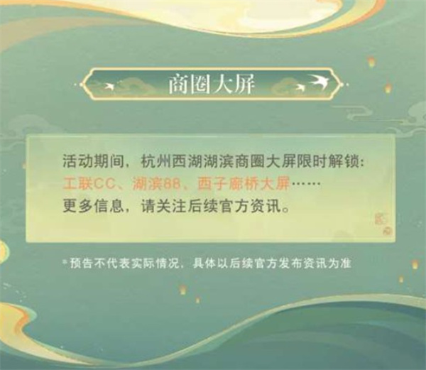 本次联动还将覆盖湖滨商圈多块大屏,包括工联 CC、湖滨 88、西子廊桥等点位,将轮播原神主题视觉内容与「旭光画」相关画面,夜间亮屏效果尤为明显,供玩家拍照打卡。