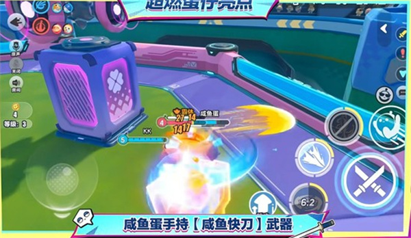 根据官方介绍,咸鱼蛋定位为近战战士,使用专属武器“咸鱼快刀”进行作战。官方预告中还提及“超长咸鱼”的相关内容,暗示该角色或拥有特殊攻击形态或技能表现,具体效果有待玩法实装后揭晓。