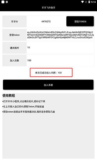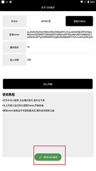 3、然后打开羊羊飞升助手,把你的ID号复制到上面,再点击获取TOKEN;