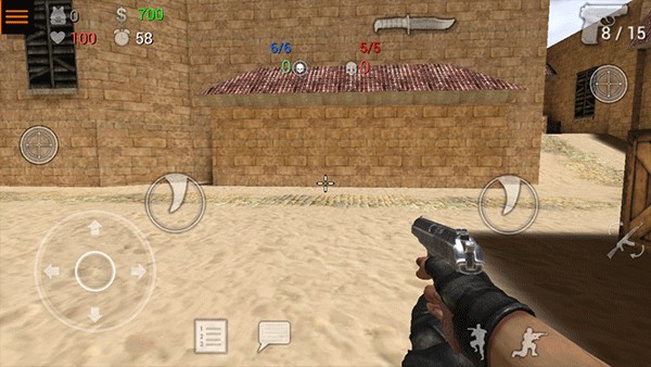 4、进入游戏后,你将以第一人称的视角进行战斗,左边控制角色移动方向,右边控制射击、换枪等操作;