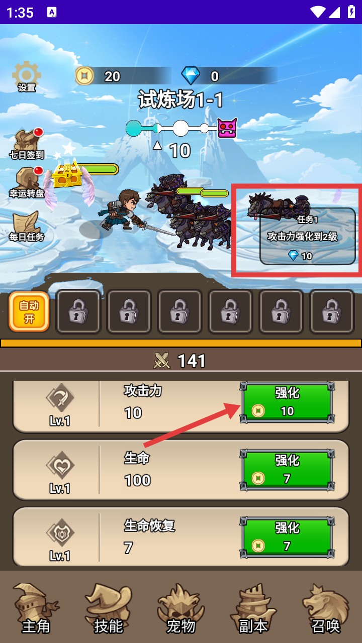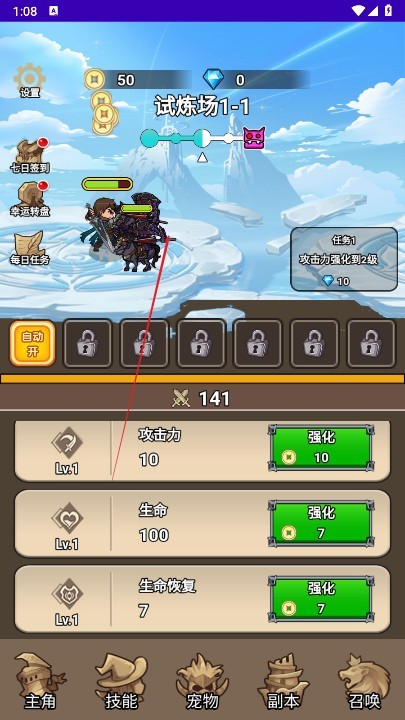 4、挑战试炼场:进入不同试炼场,完成战斗任务,积累资源并提升等级。