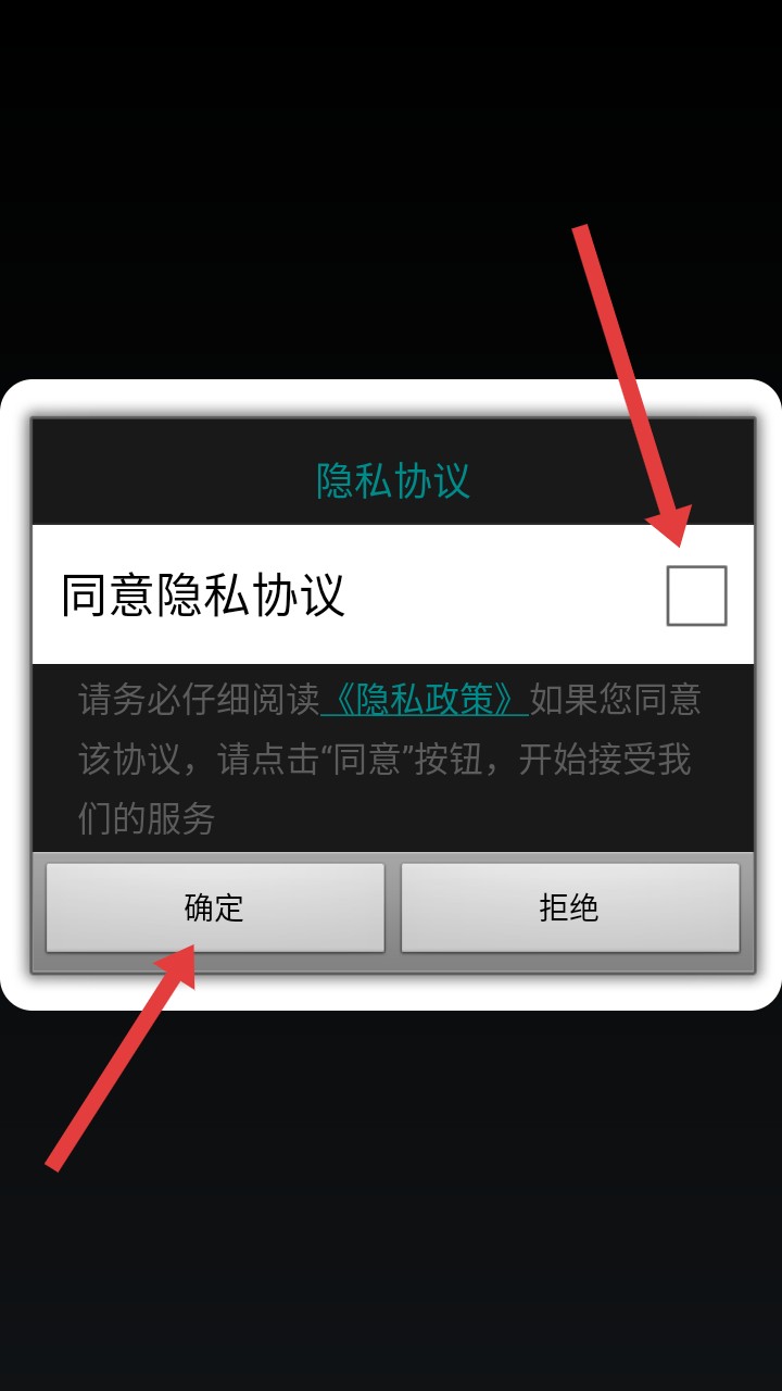 1、玩家打开游戏后,点击勾选【同意隐私协议】后再点击【确定】即可进入游戏。