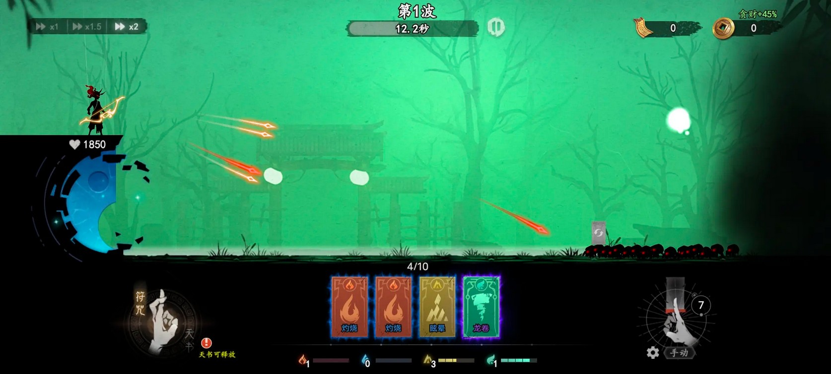 2、关卡内通过符咒释放与能量管理,实现策略层层递进。