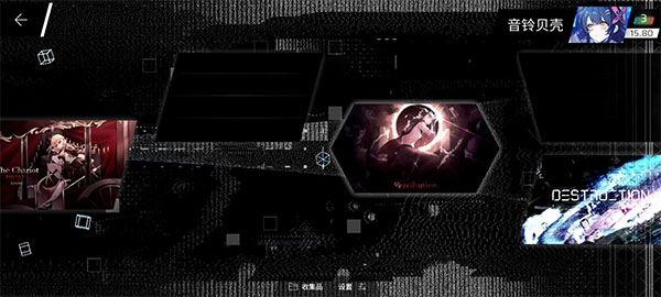 2、而进入第八章后,可以看到我们刚刚解锁的新曲,背景出现了乱码。原来刚刚解锁的是第二、第四和第五个曲子。可以看到最右侧还有一首歌,那个应该就是隐藏曲了,不过现在还无法解锁!但是我们看到了第三个的曲绘框开放解锁了,至少出现了新的方向。
