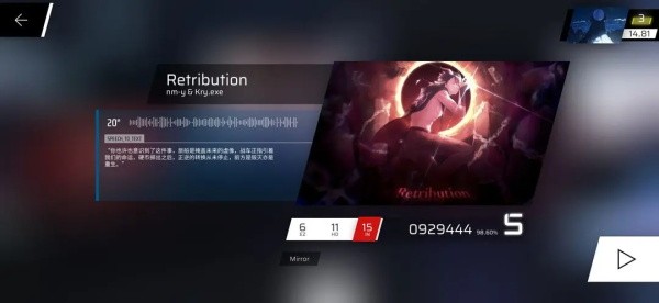 4、于是我们正式走上正确的道路!在打这个曲子的过程中出现了烟花的UI表演,似乎充满了希望。歌曲结束后,我们又再一次进入了Retribution的谱子。