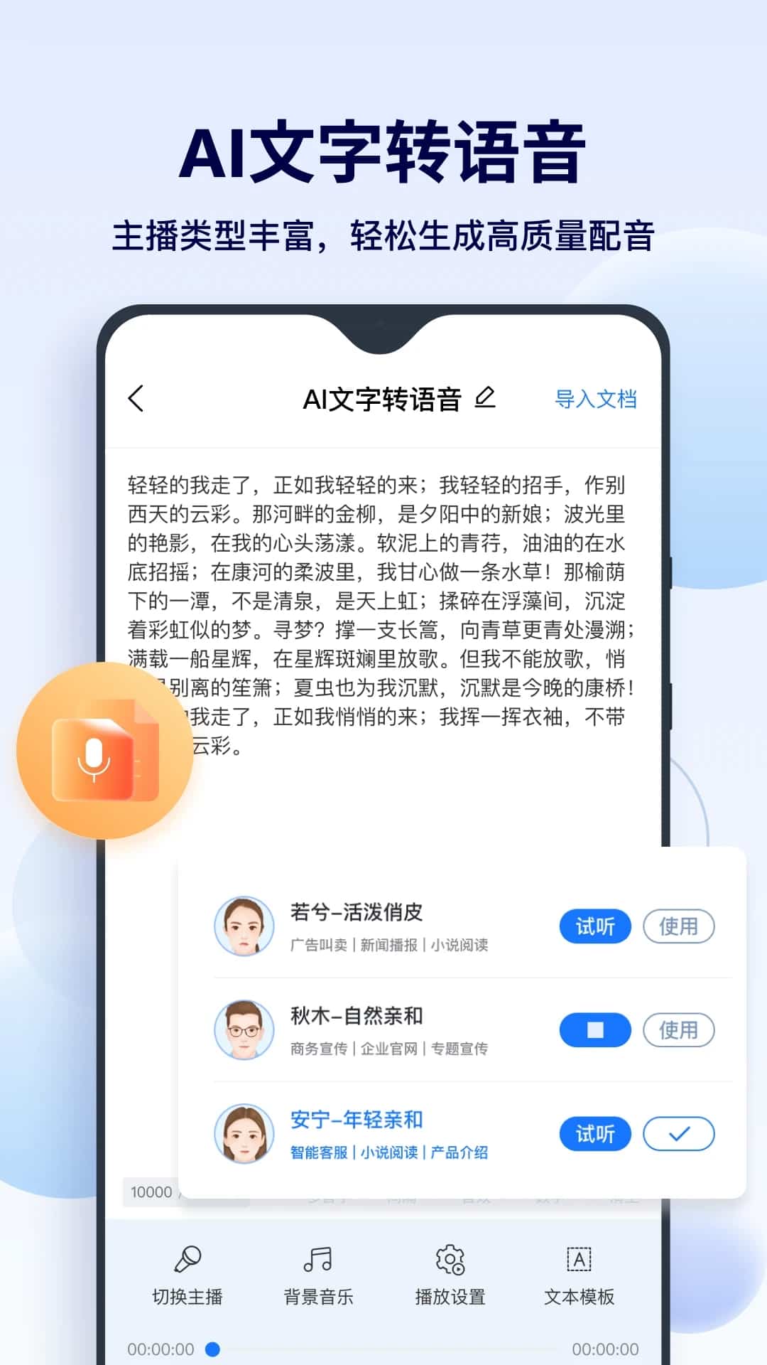 1、文字转语音功能拥有多种类型的发音方式,并且可以随意调节语速、音量和音调。