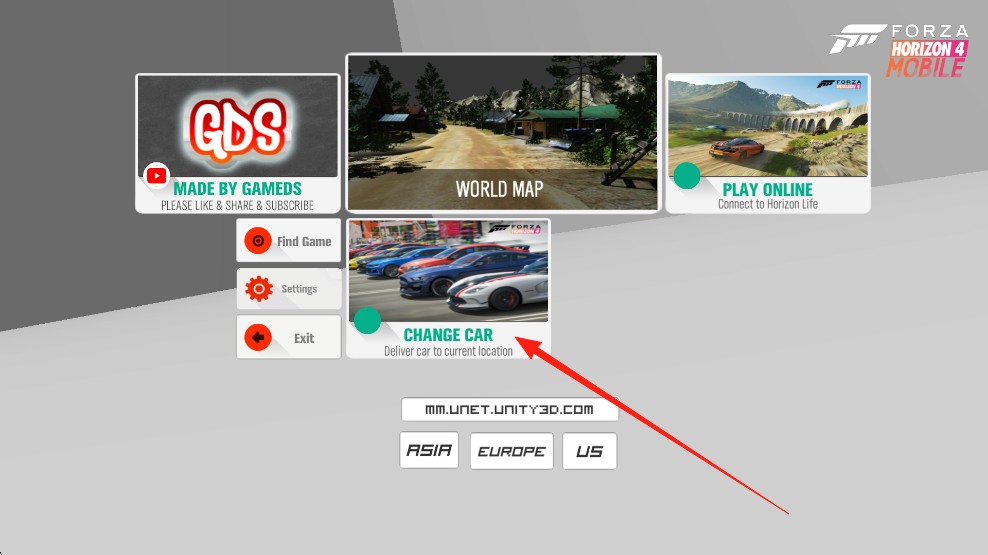 1、打开极限竞速地平线4,点击【CHANGE CAR】