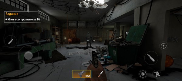 通过左侧轮盘控制人物移动,右侧为攻击、换弹、下蹲等键位。玩家需操纵人物在各种场景中移动,灵活利用地形和掩体,接近或躲避敌人。