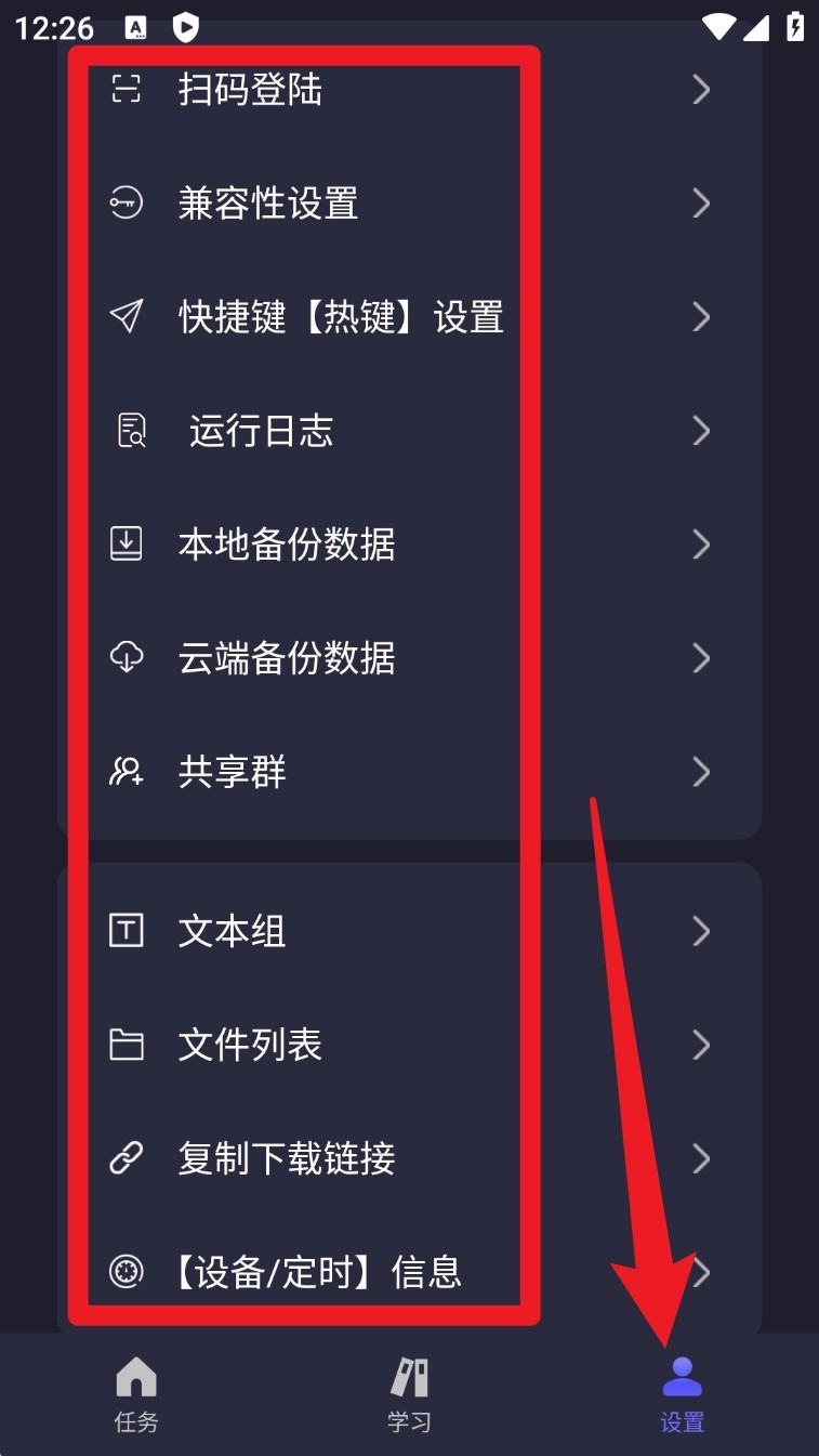2、登录成功后,点击底部导航栏的「设置」,进入扩展选项区查看备份、热键等功能。