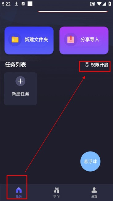 3、正式进入软件在【任务】区先授予权限,点击“权限开启”