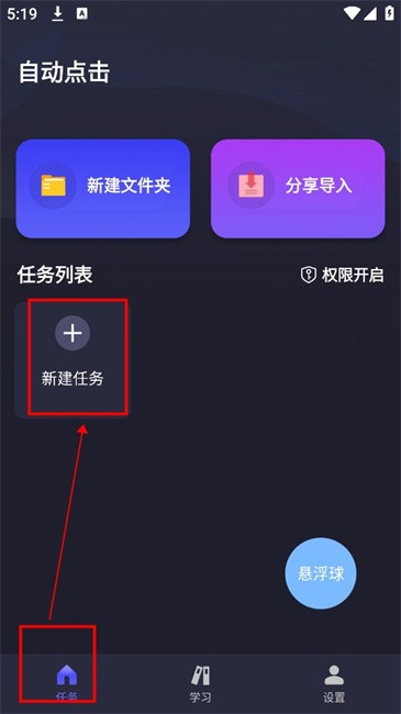 3、返回「任务」页面,点击「新建任务」开始录制自动点击流程,自定义任务内容。