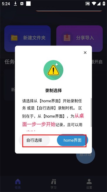 6、可“自定选择”录制时机或是从“home界面”开始录制任务