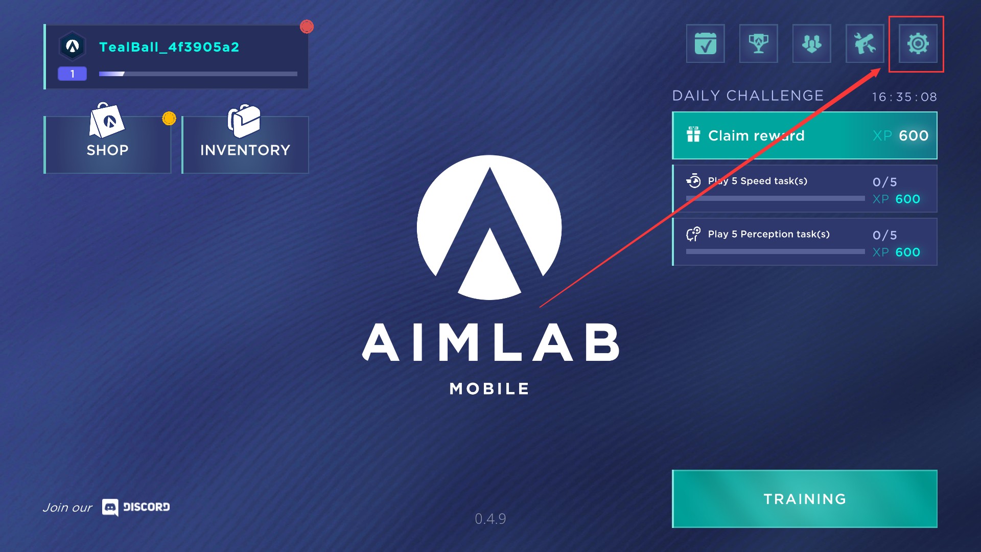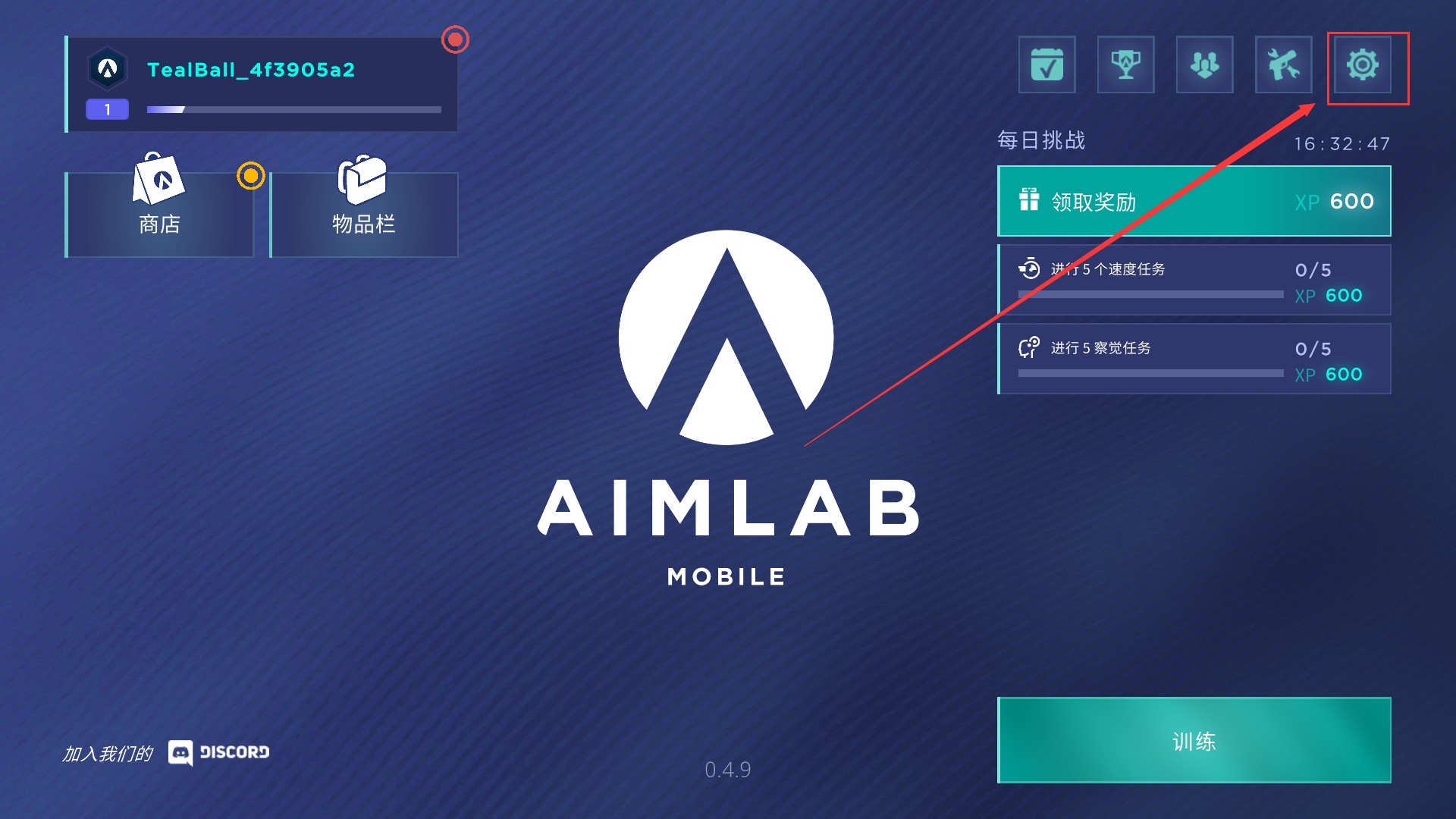 1、打开瞄准实验室手机版,点击右上角设置按钮进入设置。