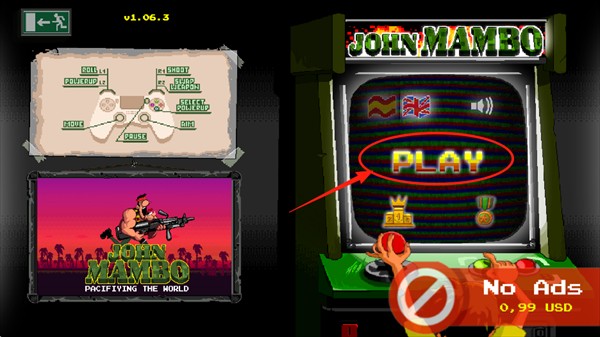 在约翰曼波中文版,玩家点击“PLAY”进入,角色从被空投地带起步,立刻投入战场。左侧虚拟摇杆控制移动,右侧按钮用于射击与翻滚,支持长按持续开火。玩家需先穿越一段地雷阵,利用翻滚动作避开触发延时爆炸的地雷陷阱。约翰曼波中文版手游下载里左侧展现角色血条与命数,右下方可切换武器系统,战术选择丰富。