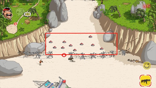 1、在沙滩场景中,点击屏幕空白的位置来操控参与者的行动,寻找前方的敌人,阻止敌人靠近或完成特定的任务。