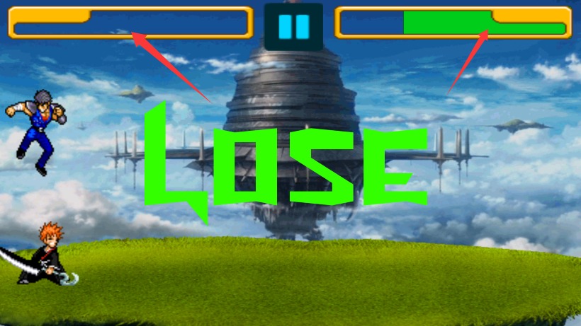 4、注意观察上方血条状态实时变化,当生命值归零时即宣告本局对战失败结束。