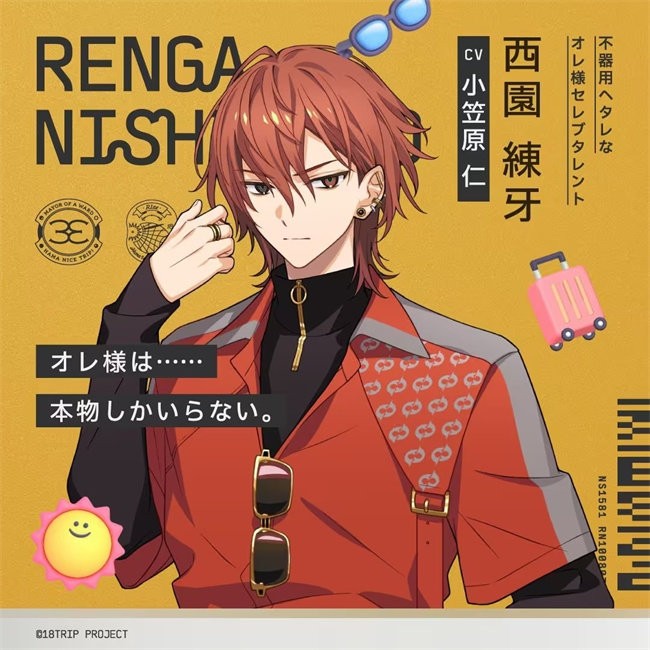 西园练牙是HAMA3区长,职业为模特与名流艺人,性格笨拙却自以为是,时常盛气凌人,实际上头脑不灵光,拼命隐藏自己的不足。生日为8月10日,年龄23岁,身高177cm,属于R1ze队伍。由小笠原仁配音。