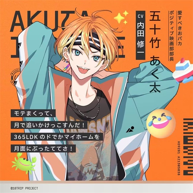 五十竹あく太是HAMA5区长,滨明日桧高中二年级学生,电影部部长,目标是成为宇宙第一电影导演。性格乐观率真,积极向上,但容易轻信他人。生日为5月13日,年龄16岁,身高175cm,属于Day2队伍。由内田修一配音。