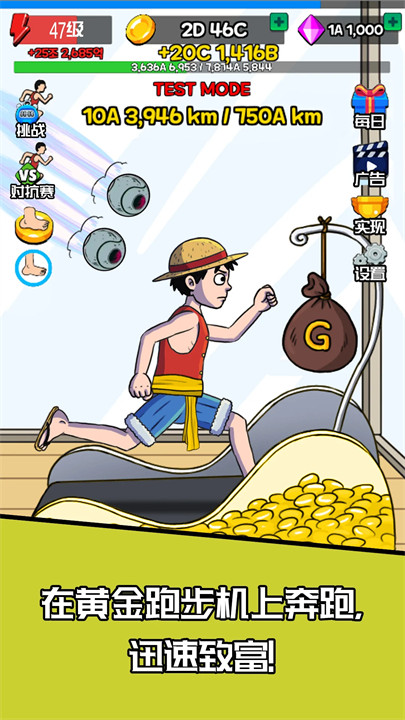 2、当右边黄金脚图标亮起时,玩家点击它之后跑步机会切换为金币样式,这时玩家每点击一次都会一定金币奖励
