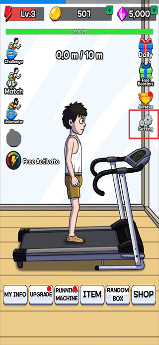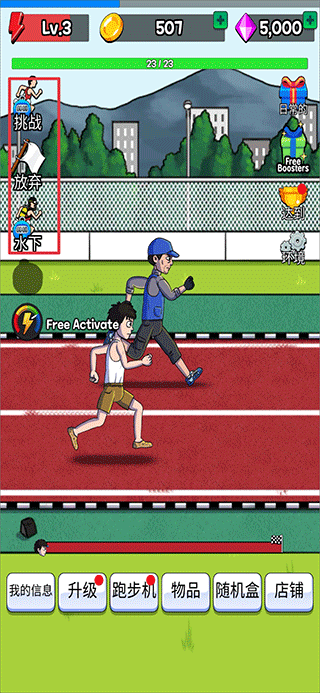 3、获得的金币可以用来升级男孩速度,耐力等的等级,也可以为跑步机升级