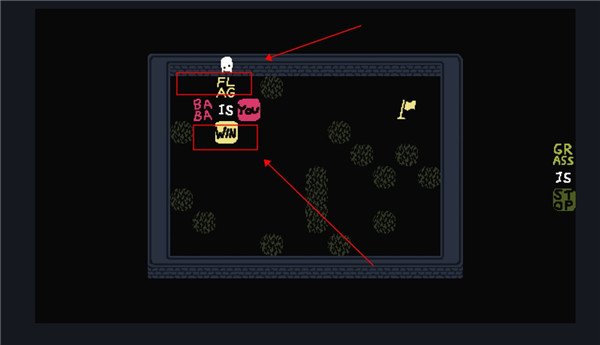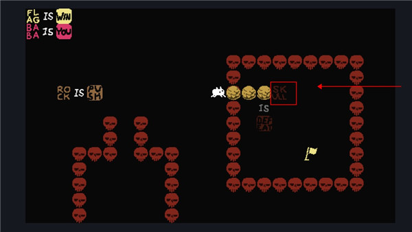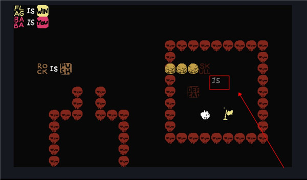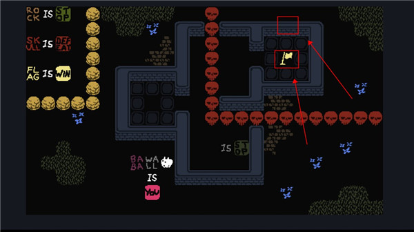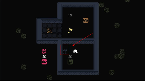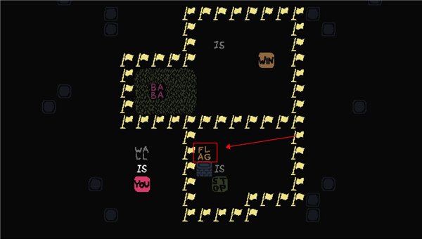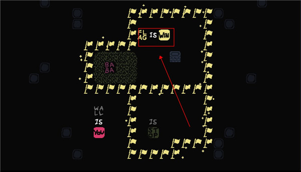 2、这个时候我们控制的就不是baba了,可以控制墙壁,向下滑动用墙壁触碰旗子。