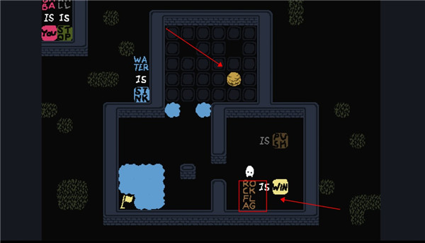 2、将这两个字母推到最下面后,原路返回去触碰另一个石头,我们就可以通关了。