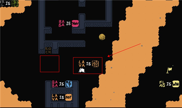 3、将这一块岩浆推开就可以通关了。