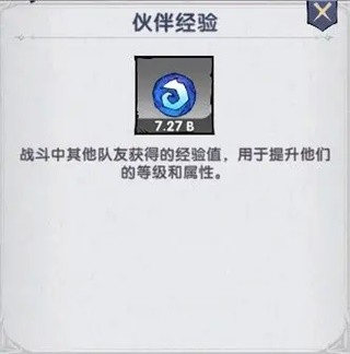 伙伴经验:用于提升伙伴的等级属性