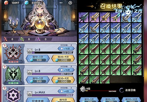 《飞翔之光》里的钻石,主要用来召唤武器、防具等装备。对于前期资源匮乏,升了角色的攻击力,就不够点防御和生命值等属性的玩家来说,通过钻石抽取防具,是角色生存力的重要保证。即便到了后期,你也需要大量花费钻石抽取装备来满足角色的成长。