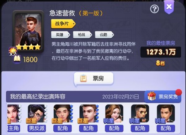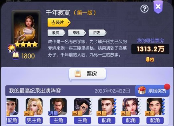 下面就是一些勉强破8的阵容,大部分的评分都是C,4星剧本就纯属于运气比较好,一个月内差不多就能抽到大部分,毕竟前期主力还是得走古装、科幻、战争这三个类型的艺人养。不然奥斯卡阶段性的排行奖励拿不到