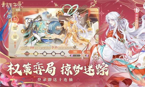 超高精细度的国风立绘,诸子百家、节气、食神、名胜、非遗等数十种血统,心动侍臣时刻相伴,专属剧情身临其境,为你打造具有中式浪漫的国风世界。