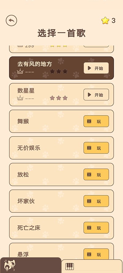 3、通过关卡后会解锁更多的歌曲,选择什么歌曲猫咪就会唱什么歌,快来试试吧!