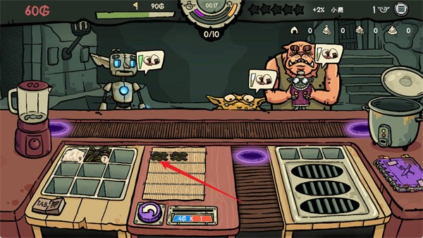 8、当所有材料摆放完成后,下方会自动计算最终价格,数值会受到食材搭配与升级效果影响。