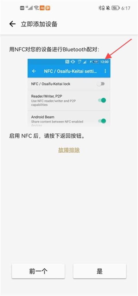 2、在NFC设置页面启用NFC功能后点击返回按钮。