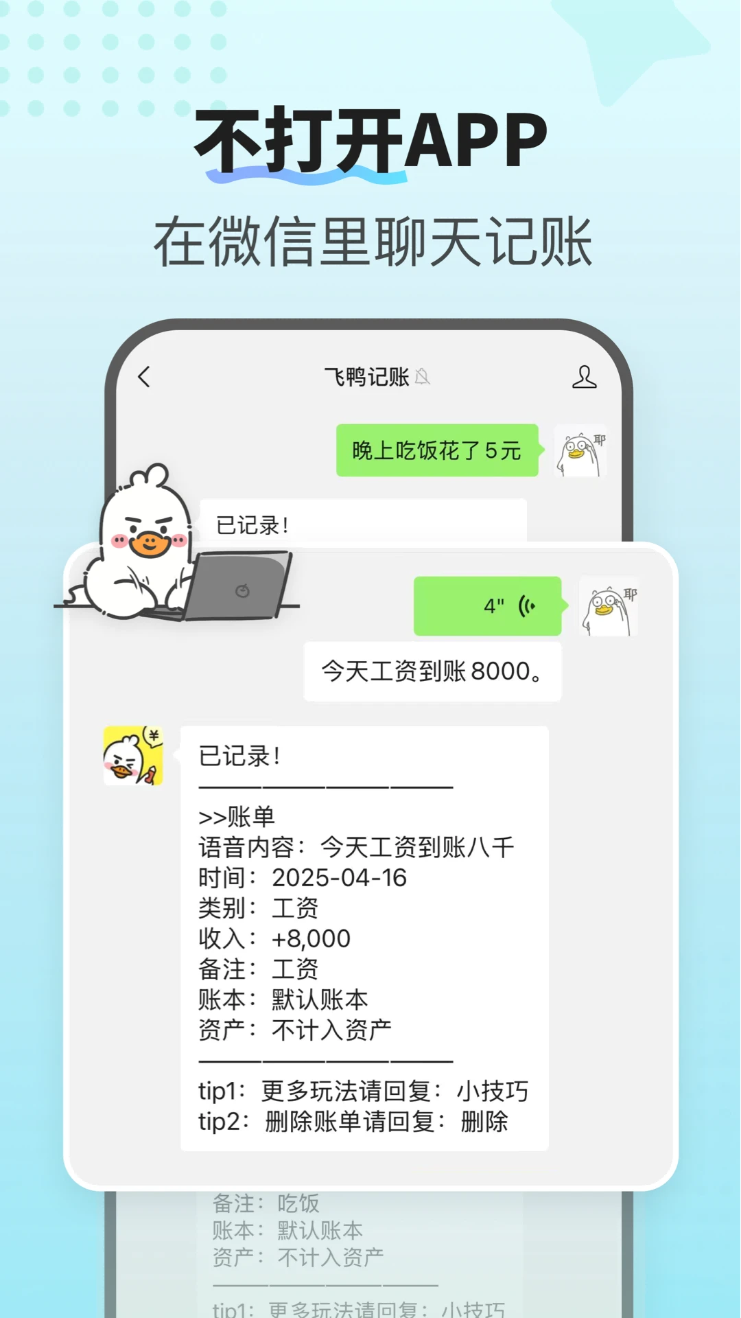 边聊边记,让爱豆监督你省钱——飞鸭记账app,让你的财务管理更轻松,更有趣