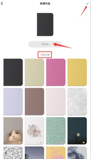 2、在封面选择界面,可以从本地相册上传封面或使用内置模板,确定后进入作品命名阶段。