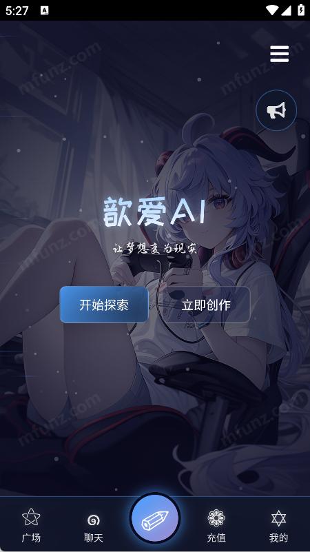 1、在本站下载软件后打开歆爱ai虚拟聊天,点击开始探索