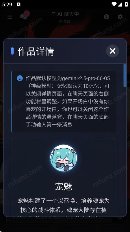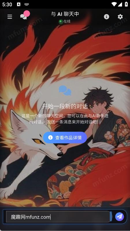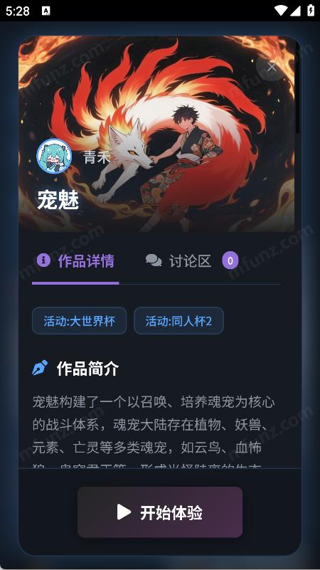 3、找到心仪角色后,进入角色介绍页,查看其背景设定与作品详情,确认选择后点击“开始体验”,进入聊天窗口。