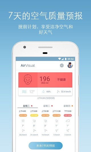1、AirVisual中文版通过图表和色彩标识,直观呈现空气质量变化趋势。