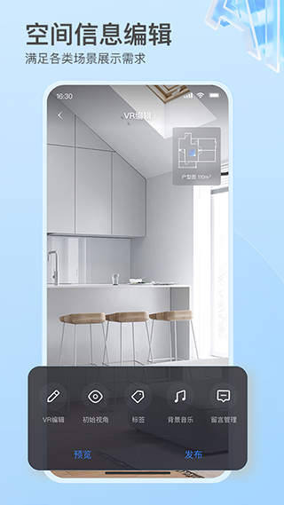 建模完成后用户可在空间内添加标签、马赛克处理、调整滤镜与视角,优化展示内容。