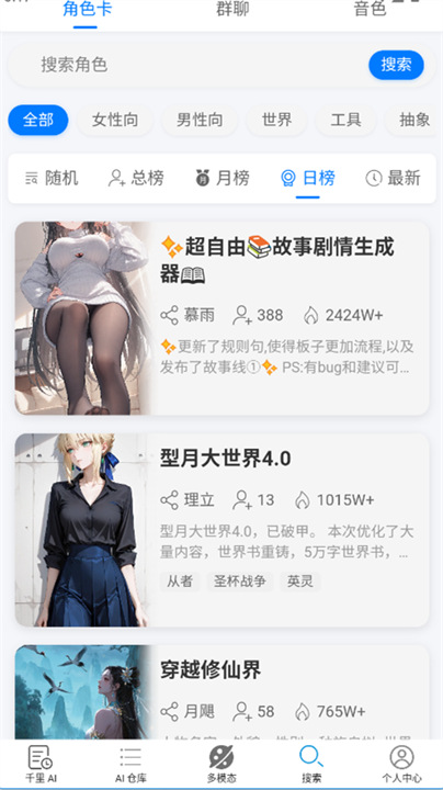 1、打开千里AI聊天app,进入AI仓库页面,点击创建角色