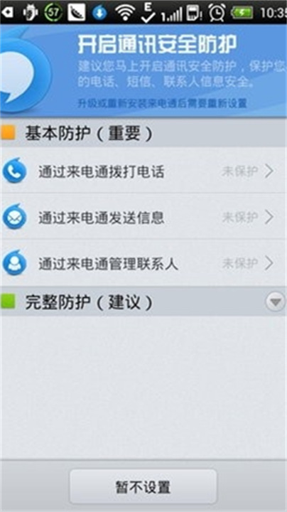 1、在安卓手机中完成安装后,首次启动需授权通讯录、电话与短信权限。