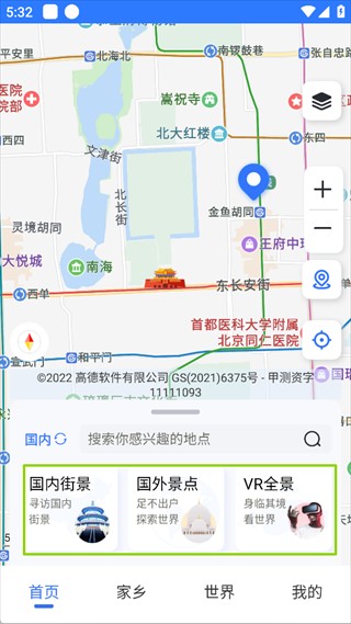 1、3D高清实景地图App,在首页点击底部的街景功能。
