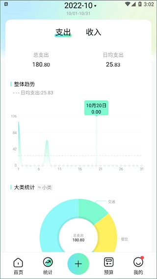 3、预算管理功能,帮助用户设定和监控月度预算。