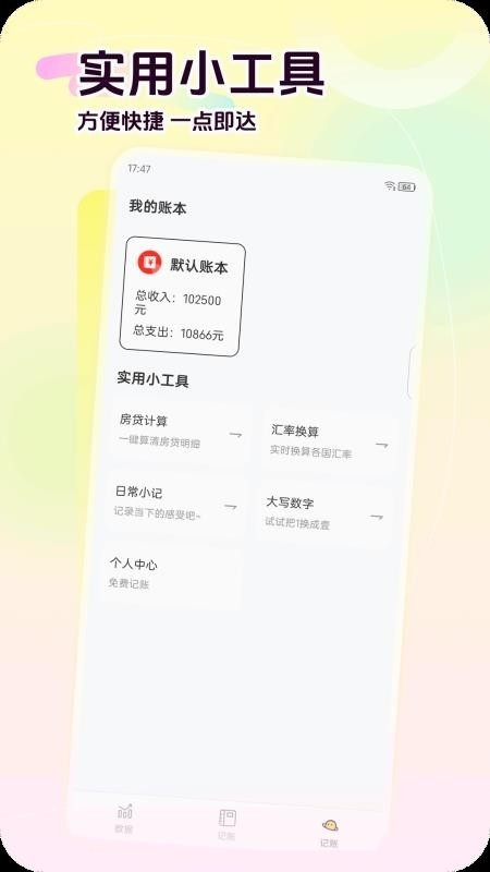 1、专业且实用的记账工具,使用轻松便捷,助你清晰、快速地完成记账。