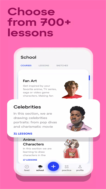SketchAR素描画图将虚拟素描投影到现实纸张上,利用AR技术让绘画变得简单。用户可以通过手机摄像头捕捉纸张并自动将图像对齐,调整大小、角度和透明度,确保绘画精确。SketchAR素描画图app下载内提供大量绘画模板,包括素描、动漫人物、动物等,供用户选择使用。每个绘画过程都配有详细的教程,确保初学者能够逐步学习并掌握技巧。