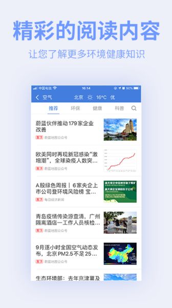 蔚蓝地图精准版提供实时空气质量监测数据,用户可了解当天空气状况,并根据空气质量预报和霾预警,合理安排开窗、外出或使用空气净化器等活动。