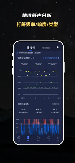 睡眠报告,蜗牛睡眠内设的识别算法经过大量专业睡眠实验室测试比对,并且与专业的脑电、心电睡眠监测设备进行睡眠数据对比。