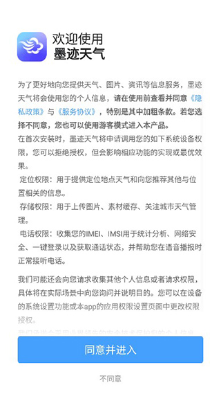 1、下载安装好本站提供的墨迹天气预报2026软件,进入后先同意相关的协议;